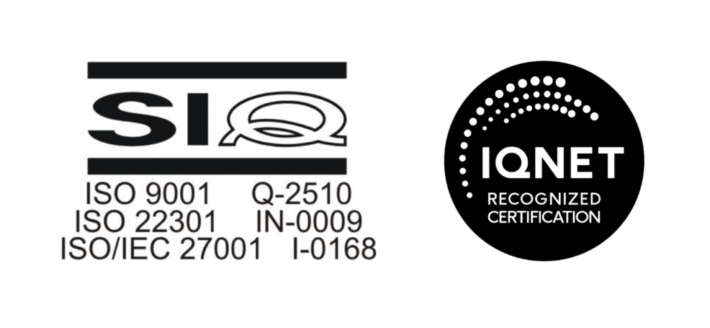 ISO 22301:2019 – certifikat št. IN-0009 (sistem upravljanja neprekinjenega poslovanja)