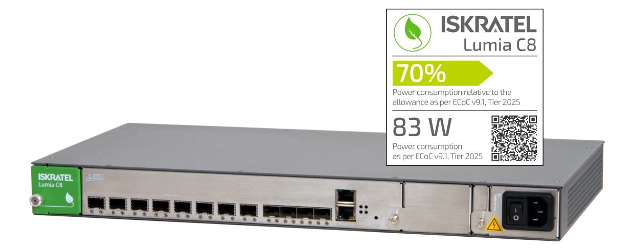 Iskratel Lumia C8 nudi 8 priključkov Combo OLT za optično povezljivost XGS-PON, GPON ali 10GE P2P z iste naprave. Visoko delilno razmerje PON omogoča operaterjem migracijo z GPON na XGS-PON na istem produktu in v lastnem tempu.